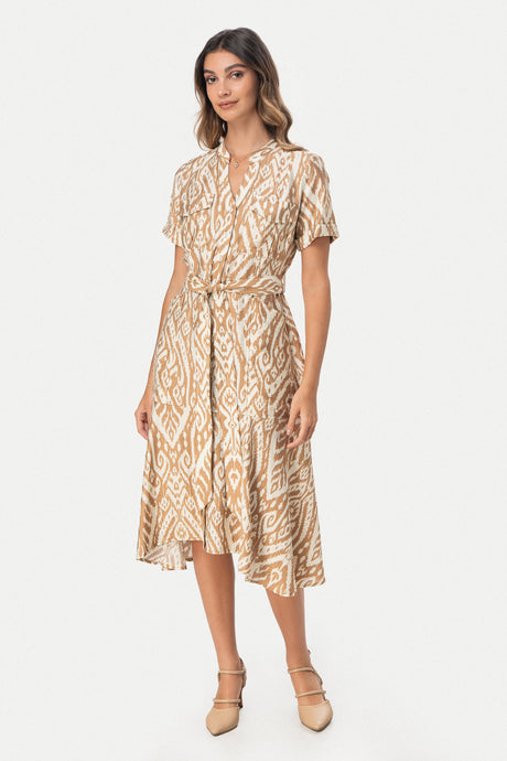 - Vestido de gasa estampada con caída ligera y fluida