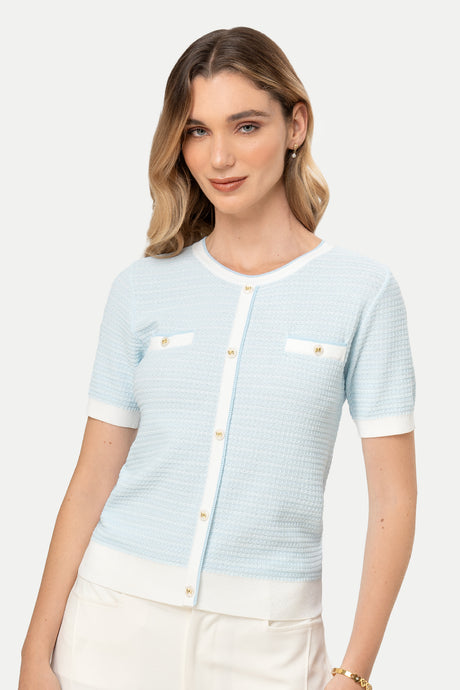 - Cuello redondo con ribete a contraste