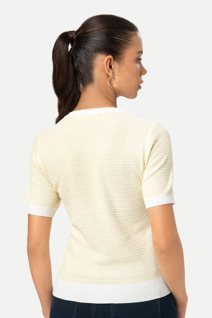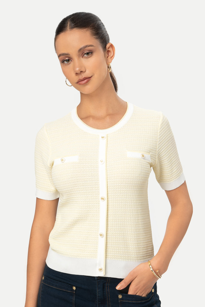 - Cuello redondo con ribete a contraste